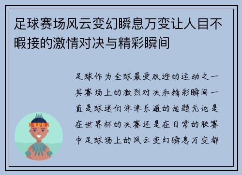 足球赛场风云变幻瞬息万变让人目不暇接的激情对决与精彩瞬间